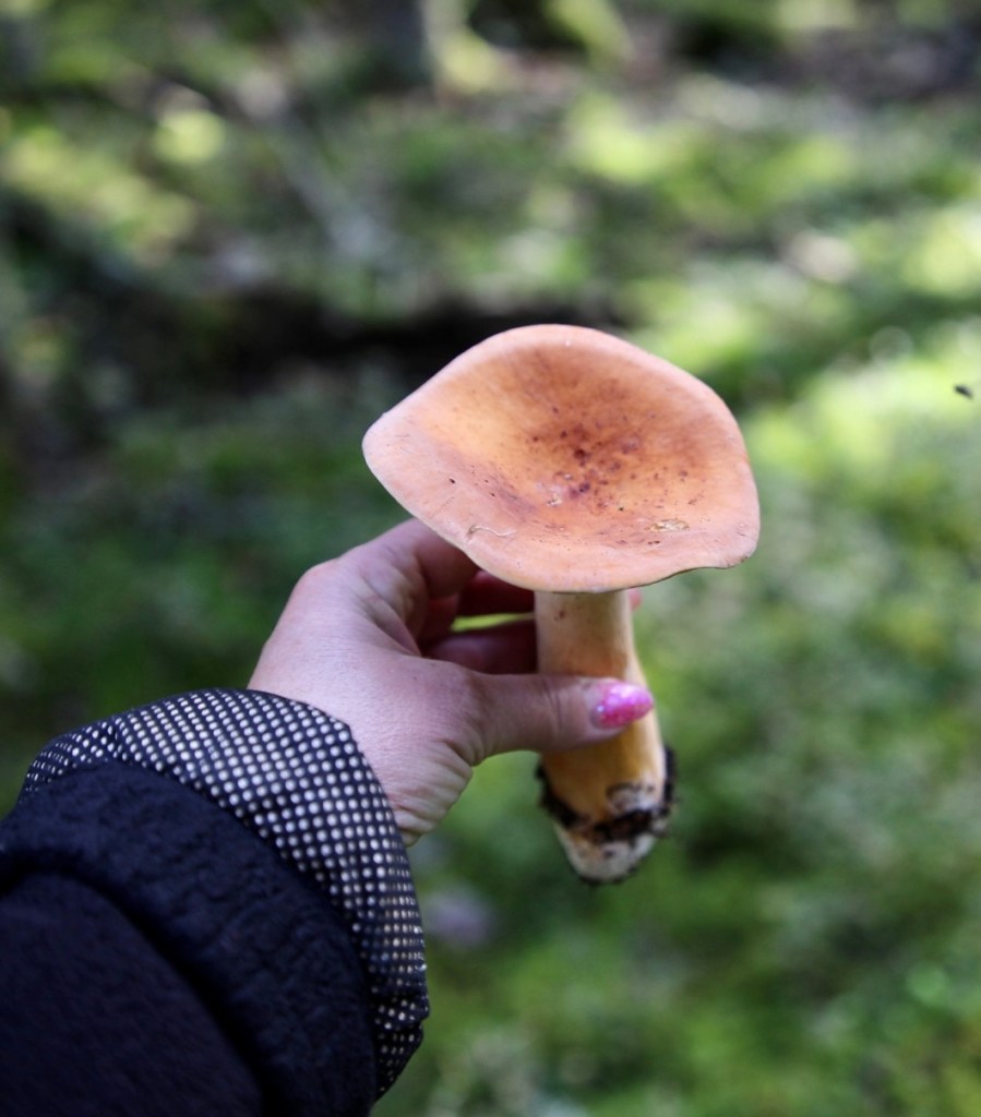 Att vara med Helena i skogen gör att man lär sig många olika sorter. Matte har näsa för att hitta Mandelriskor! Det är en svamp som smakar skaldjur. Vissa tycker om den andra inte. Vi har dock inte blivit kalibrerade på sådana.