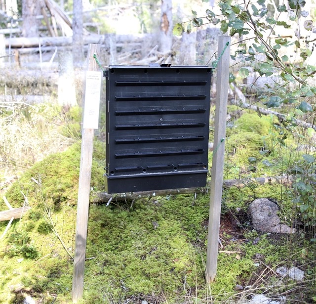 Vi hittade något konstigt vid sidan av stigen. Det var en barkborrsfälla.