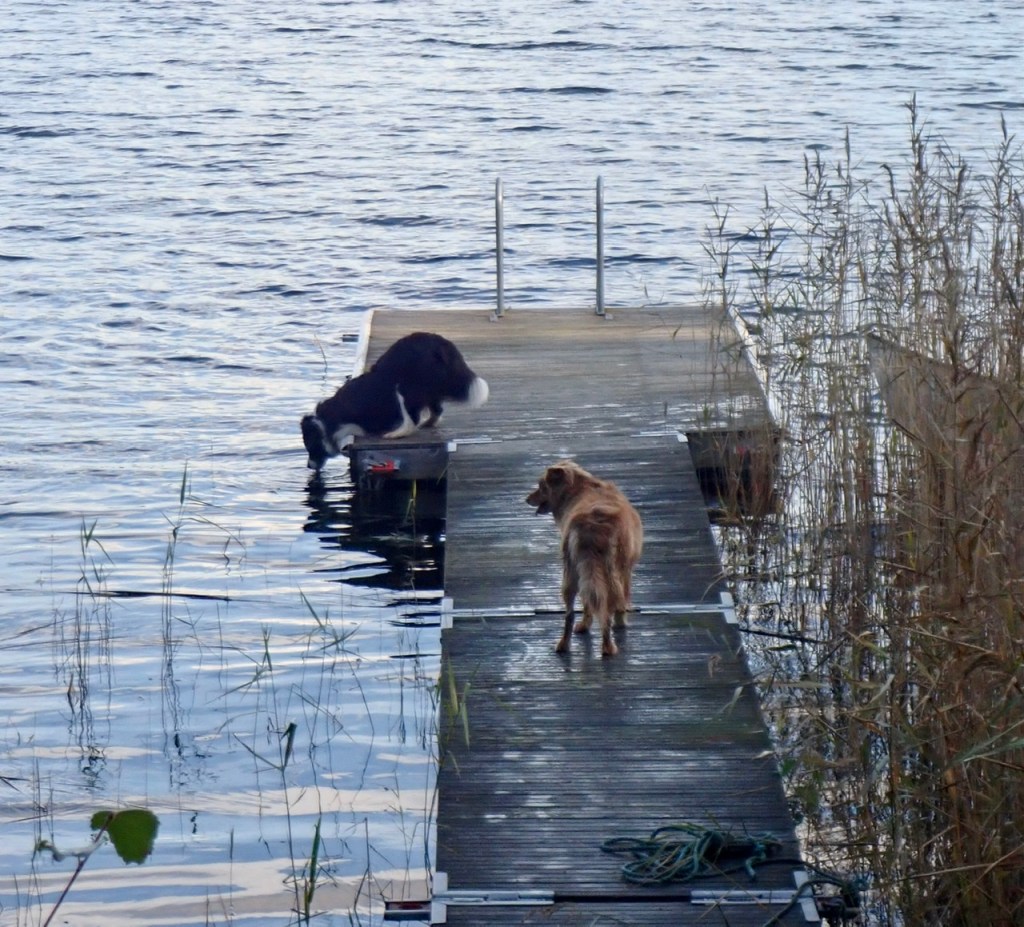 Snart var den incidenten glömd och promenaden fortsatte. Basse och Troy måste promt kuta i vattnet. Tänk att jag förstår inte tjusningen med det men de två bara älskar det.