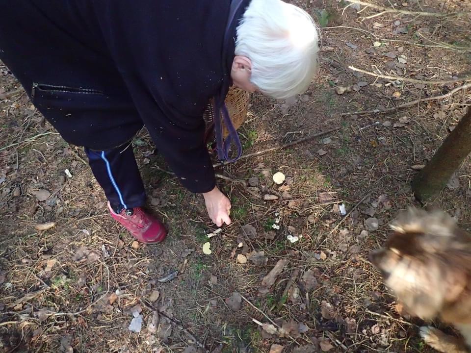 Helena och Wilma har inte bara kurs för hundar i svampsök. När matte går i hårdträning hos dem så det släpas med korgar och knivar på våra skogsturer. M börjar lära sig några sorter och just nu är skogarna fulla av taggsvampar både de bleka och de röd-gula varianterna. Basse tittar intresserat på, kanske kan man få en slick av tubosten tror han.