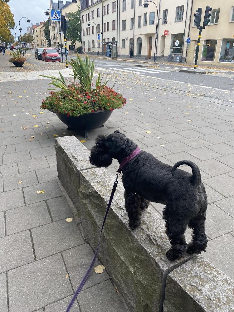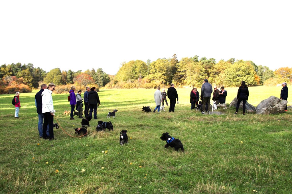 Lördag och dags för gemensam dvärgschnauzerpromenad vid Åkeshov. Många bekanta kompisar och så Troys kullbror Dojo som tagit med sin husse Hans-Erik och matte Eva. Jag gör mig lite till för dem och det lönar sig.