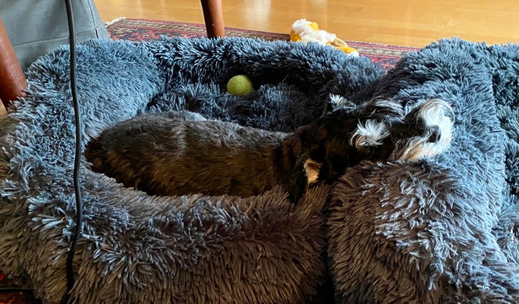 Väl hemma tar vi en tupplur, det är skönt att vila efter en sån härlig promenad med en massa kompisar.