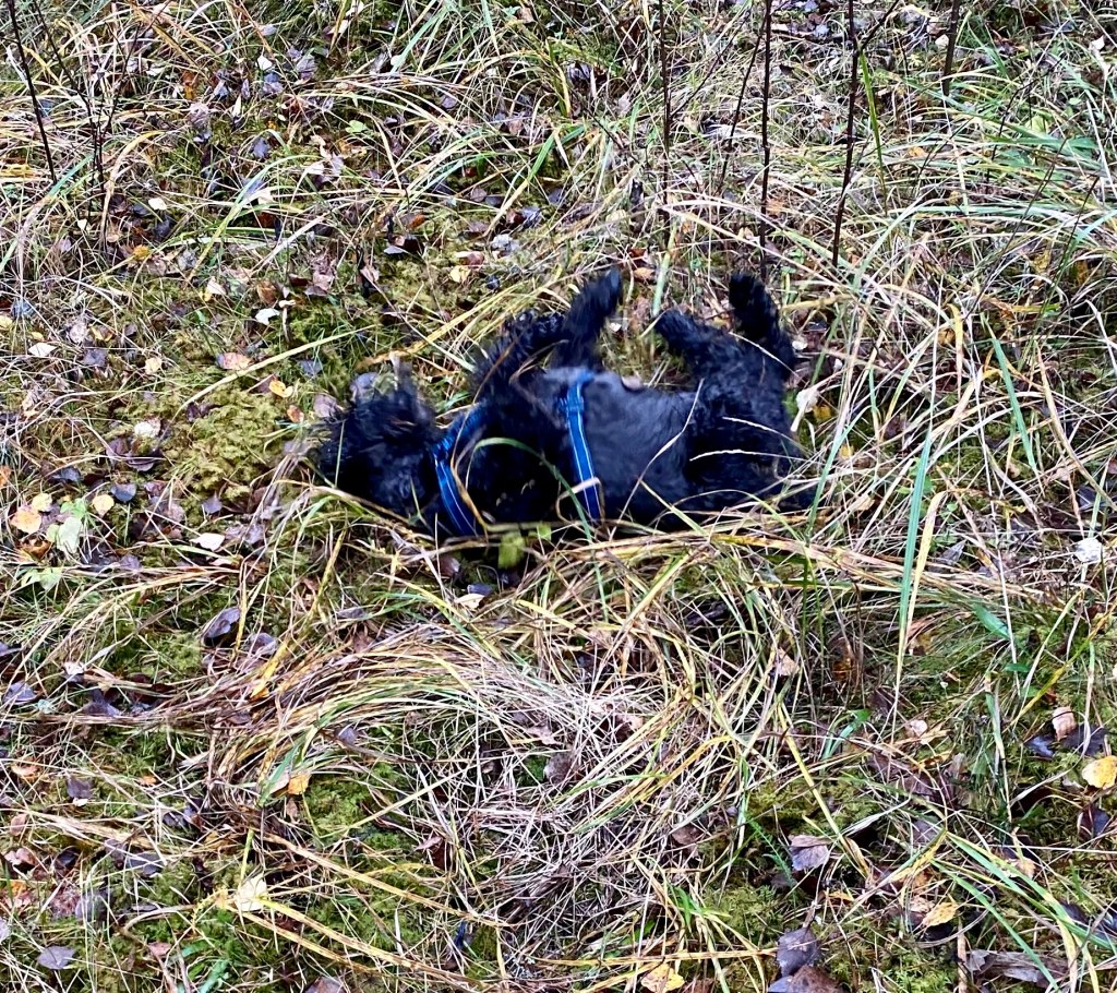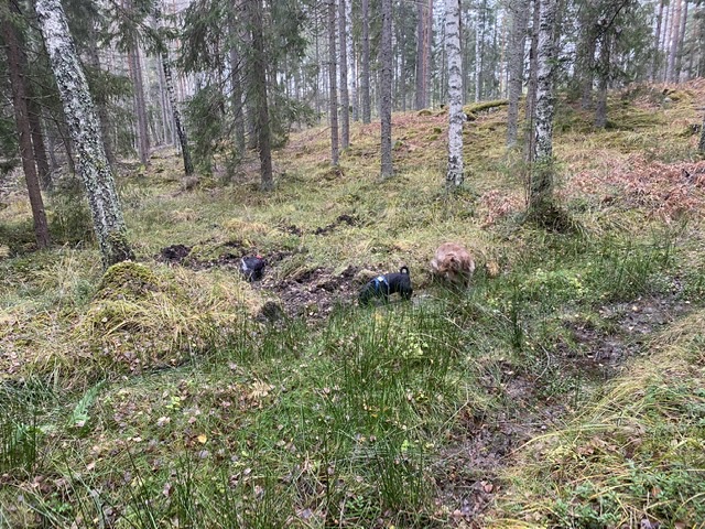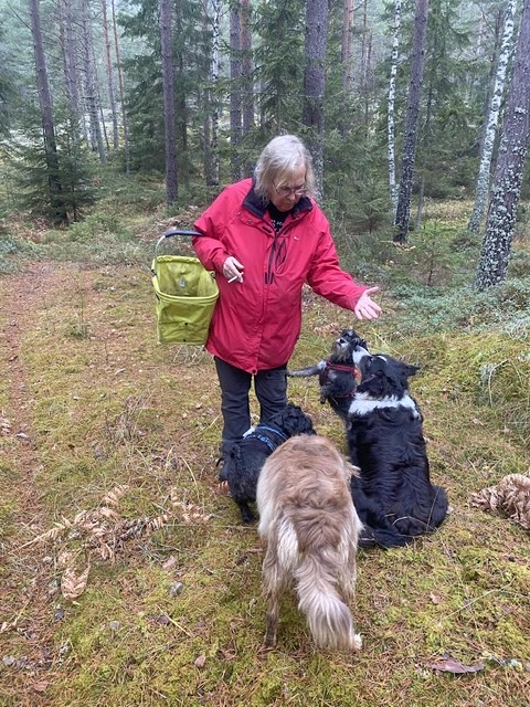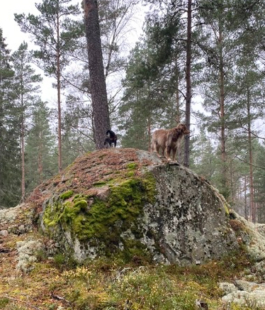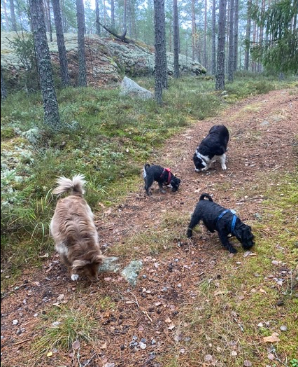 Äntligen….äntligen på fria tassar i skogen med Helena, Wilma och Basse. Måste hela tiden hålla koll på att mattarna hänger med. De fastnar på många ställen för de hittar svampar.