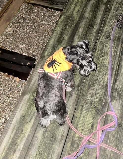 På eftermiddagen slumrade vi gott och efter kvällsmaten var det dags för lite skrämsel jobb. På med minikapporna som har en stor spindel. Sen gick vi ned till hållplats Trumslagarskogen för att titta på spökspårvagnarna.