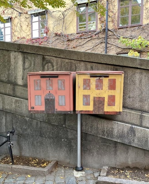 Vi tog en tur genom Gamla Stan, det kallas för social träning i stadsmiljö. Matte tyckte att de målade lådorna var fina.