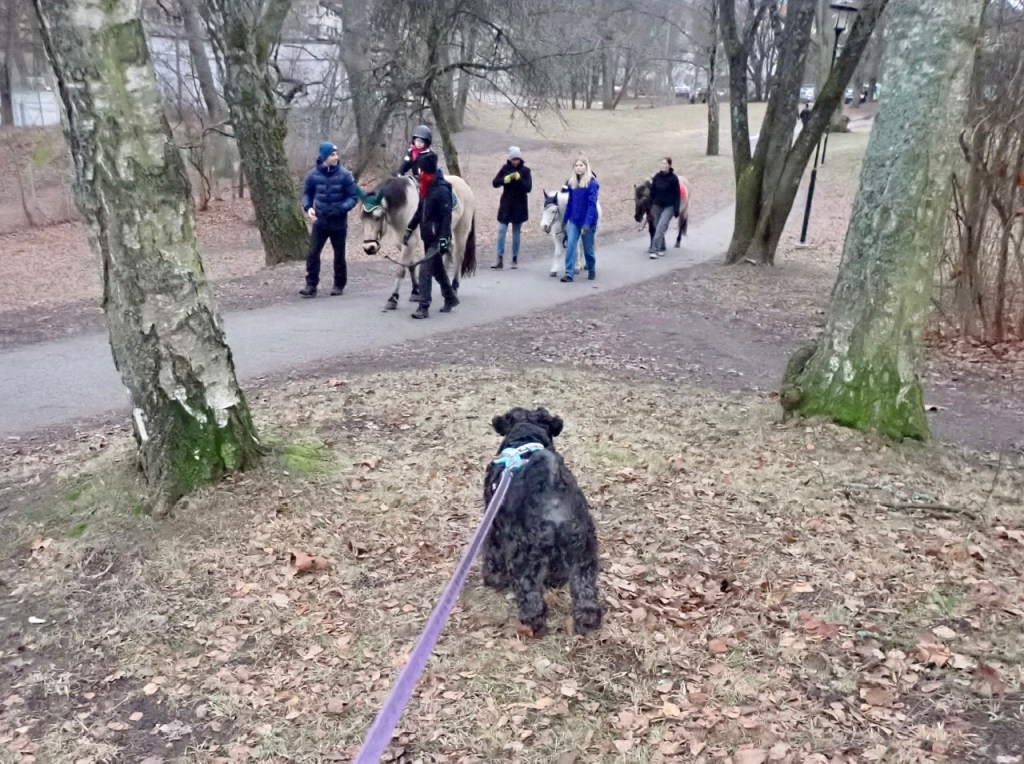 Så då var det dags igen att kolla in de stora fyrfota sakerna. Vi tycker nog fortfarande att de är lite läskiga. Men allt går bra, de går förbi utan att notis om oss och vi står tysta och kollar. Matte tycker att vi var duktiga att vi får lite godis.