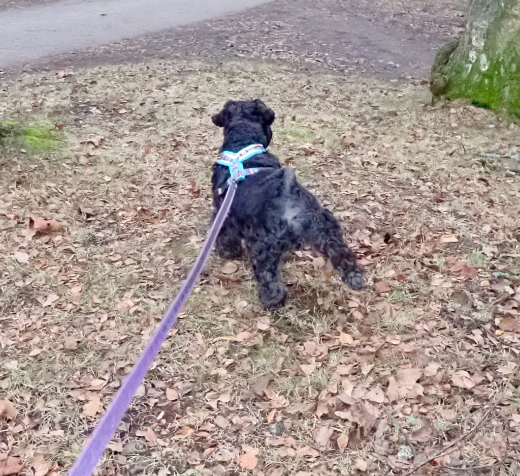 Sen har vi då Mohas ritualer när hon skall göra 1an och/eller 2an. Herregud så krångligt och vilken tid det tar att hitta en plätt som lutar rätt, luktar rätt, har rätt underlag och som helst har lite skydd t.ex lågväxande buskar. När hon håller på och travar runt för att hitta rätt plats sätter jag mig ned och kollar in omgivningen tills hon är klar! Har lärt mig att det är ingen ide att försöka skynda på.