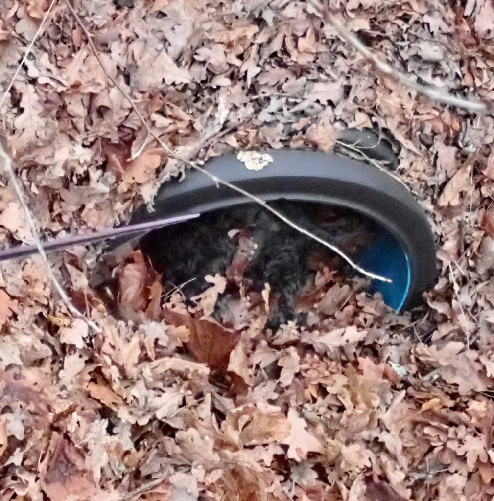 Troy tror att det finns råttor i alla rör. Matte håller ingen för han får inte gå in längre än att hon kan få tag i bakbenen och dra ut honom om det skulle vara så att han fastnar. Han kämpar på för att komma längre in.
