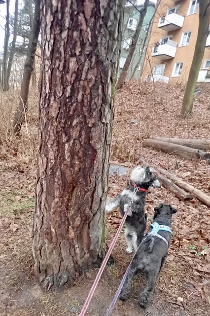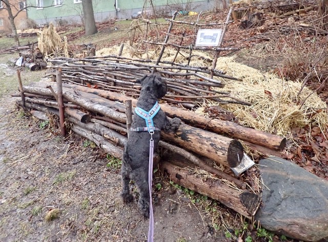Nu när det är barmark måste vi bara titta till högen med de många råttbona. På andra sidan gångvägen finns en stor kompost där de har massor av mat. Ja jag kan hålla med om att det luktar av en och annan godsak därifrån. Det är nog därför råttorna emellanåt kilar tvärs över gångvägen. Det tål vi inte, vi går bananas och då säger matte att vi får hjärnsläpp.
