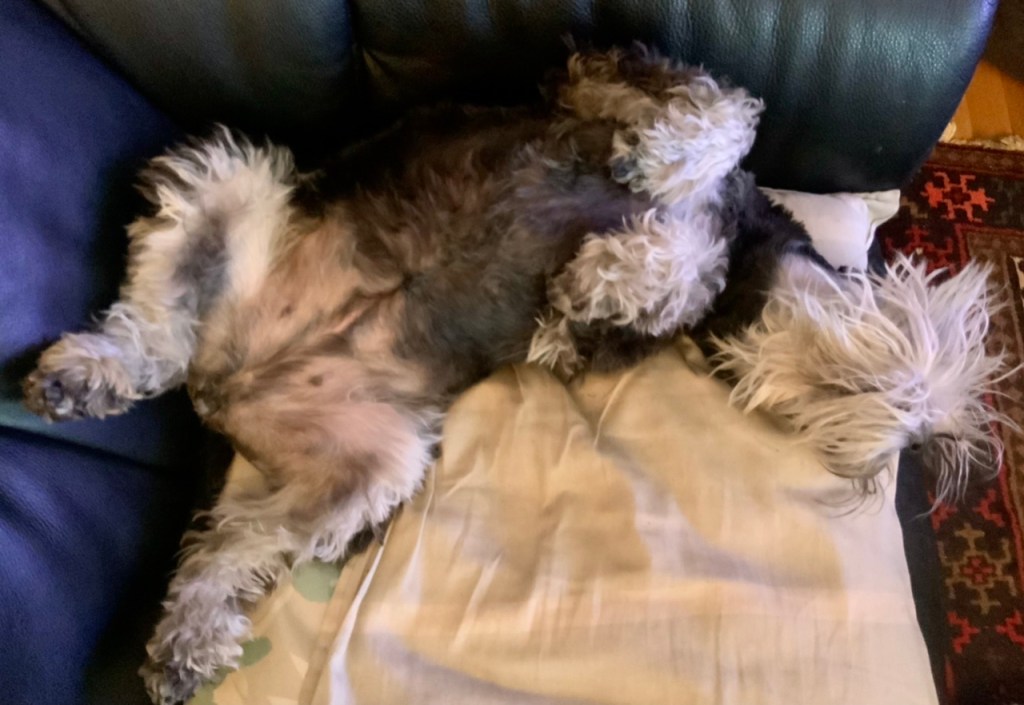 Tänk vad skönt det är att ligga på kuddar i soffan istället för att släpas runt på en långpromenad när det kommer isvatten uppifrån. Du kan väcka mig när det är dags för middag.