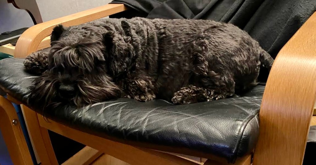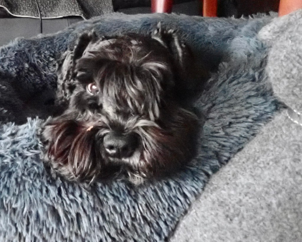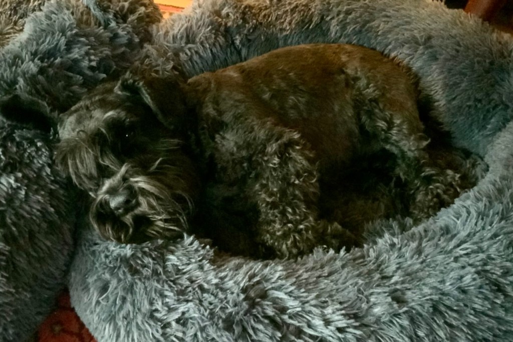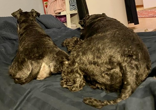 Troy vill vila lite för han är trött pga att han är dålig i magen. Jag lägger mig bredvid honom för att hålla koll på honom.
