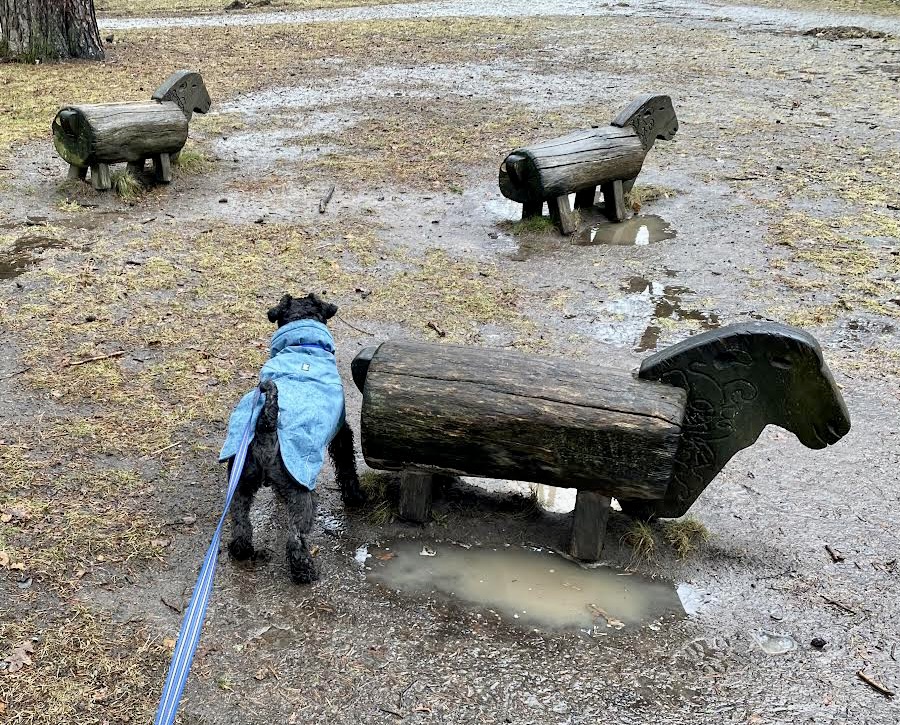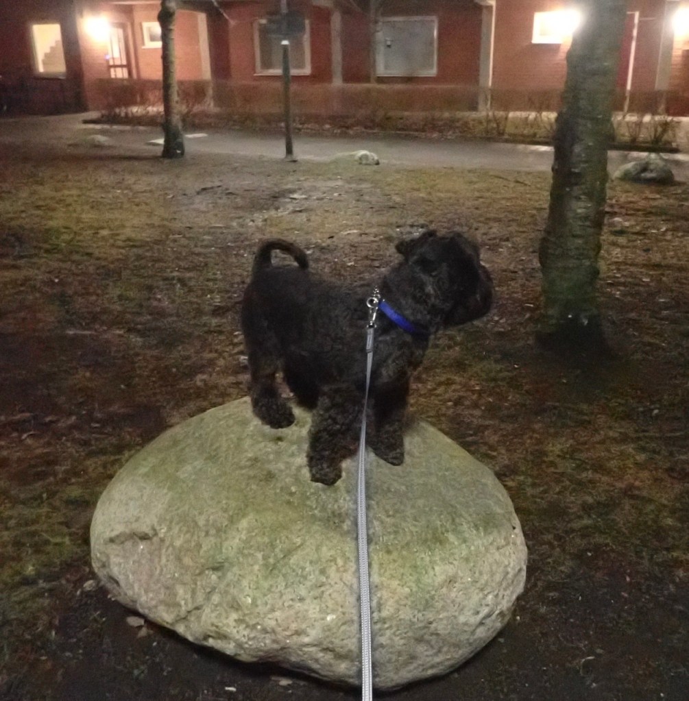 Troy har fasta spaningsstenar han alltid måste upp på. Kan du se något undrar jag? Det brukar springa många katastrofer här.