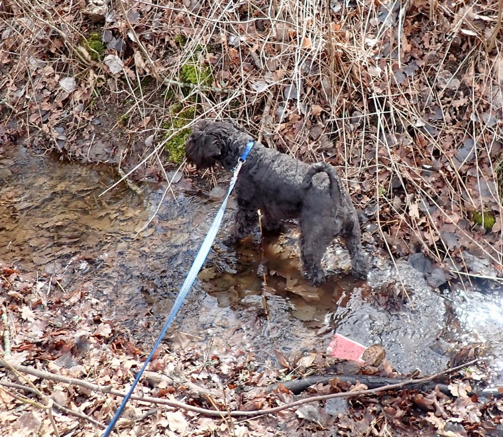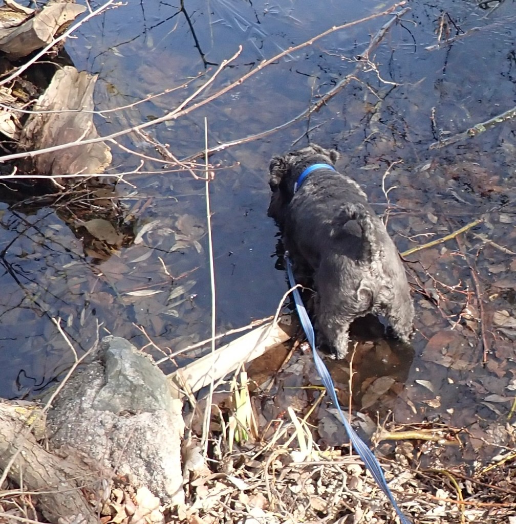 Nu är det nog vår iallafall. Det porlar i diket som går längs med Lillavägen. Troy är överlycklig för han fick gå i och plaska med tassarna. Han går en bra stund där nere i vattnet tills matte säger att nu får det räcka, du blir kall.