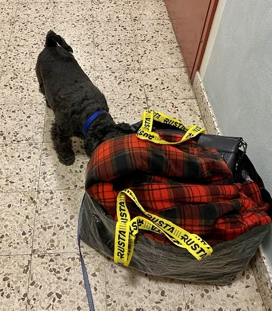 Nu är det något på gång. Det packas i väskor och våra GPS-SÄNDARE packas också ned. Kan det vara dags för att åka till vagnen? Matte säg att det är så för det är det bästa jag vet.