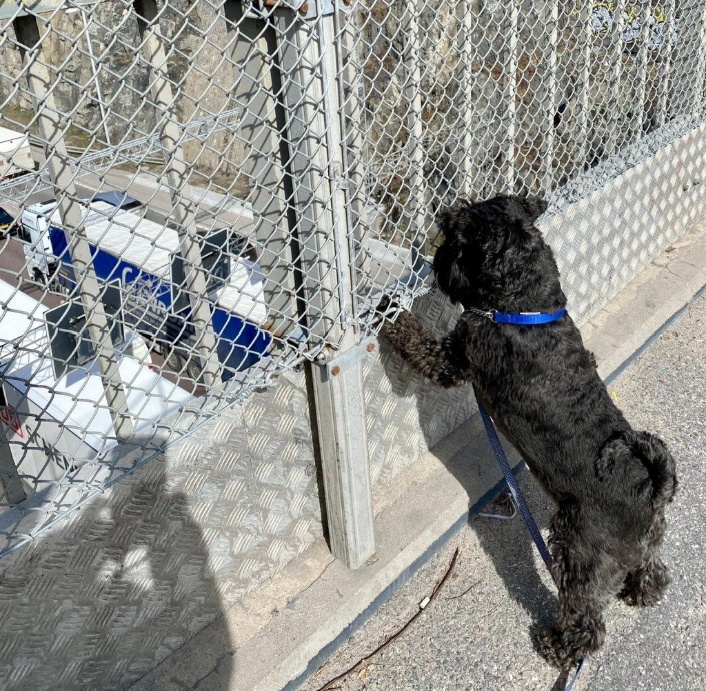Troy börjar fatta nog att det är en tur till vagnen som står på dagordningen. Han kollar noga att allt är packat. Godis, grisöra, torrfoder allt är med då kan vi åka.