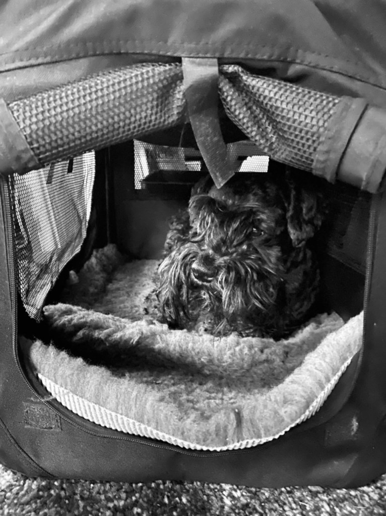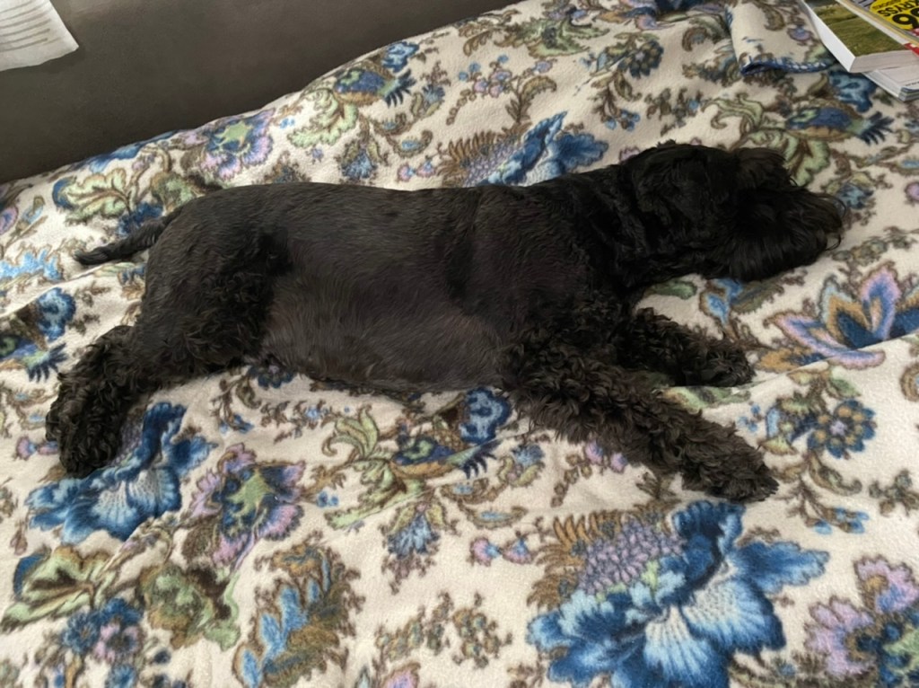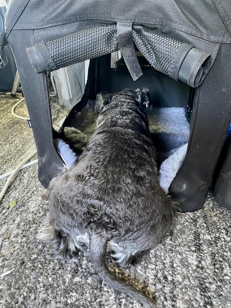 Väl hemma vid vagnen har Troy däckat ihop på husses säng, han är jättetrött efter dagens röjartur. Jag tror att allt det där badandet tar på krafterna. Jag får ta över vakten tillsvidare. Vi gör gemensam sak grannen Chansa (en schipperke) och jag.