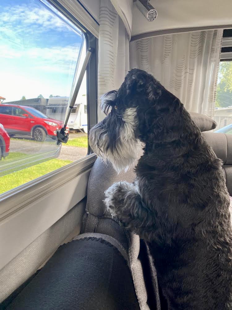 Moha tillbaka igen. Det regnar utav bara den så när vi kom tillbaka till vagnen satt vi kvar i bilen tills det blev ett kort uppehåll. Vi han precis in med oss och alla grejor innan det började ösa ned igen. Troy tycker att det enda raka är att gå och lägga sig i kojan. Man blir väldigt trött av regn och shopping. Snart har han somnat och drömmer troligen om godisbutiken för det viffas och voffas. Jag tror att han i drömmen försöker charma kassörskan med sin sång.
