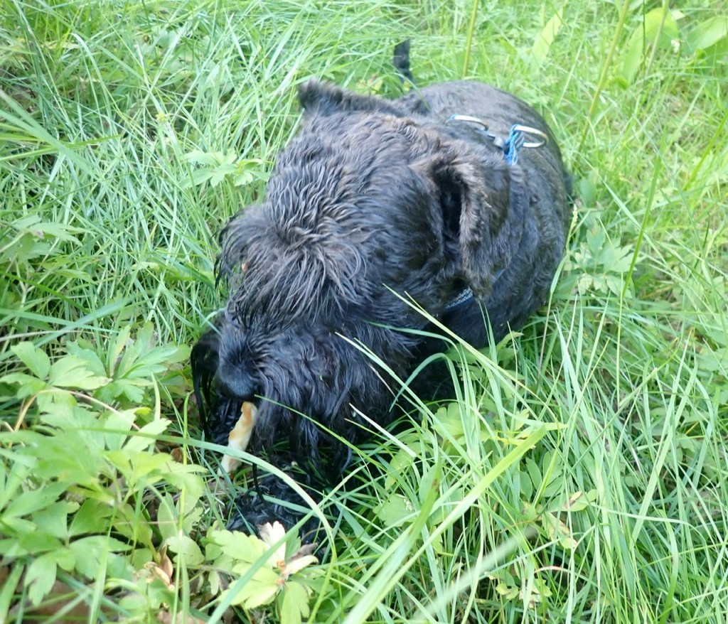 Kan livet va bättre, på fria tassar i skogen och så får man ligga i skuggan med ett tuggben.
