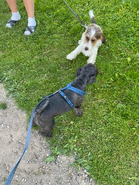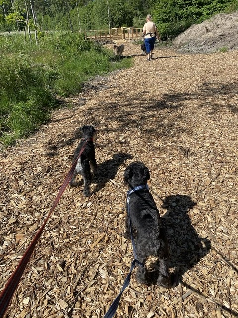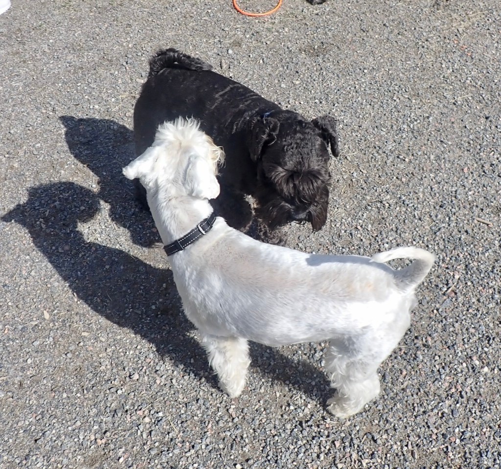 Söndag och dags för hundträff på Klovsten. Den vita schnauzern Charlie kom och vi har inte setts på ett tag.