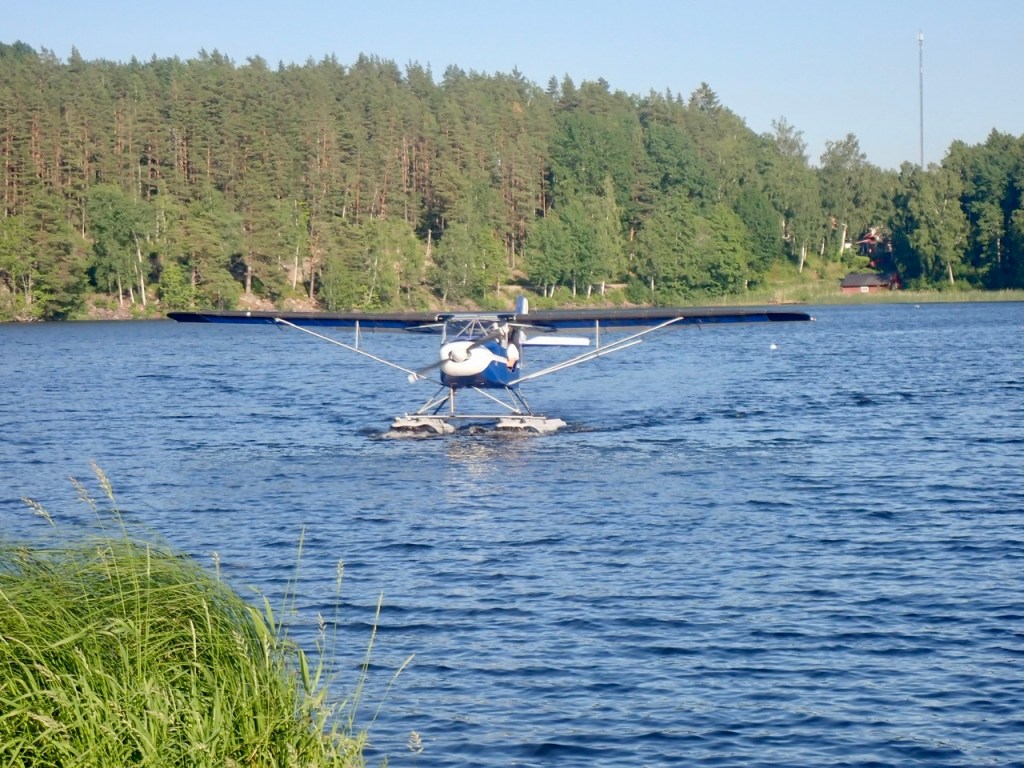 Det kom en kompis på besök hos Tommy. Husse Tommy och Jonas som han heter har jobbat ihop innan husse blev pensionär. Jonas kom i eget litet flygplan som det går att landa på vattnet.