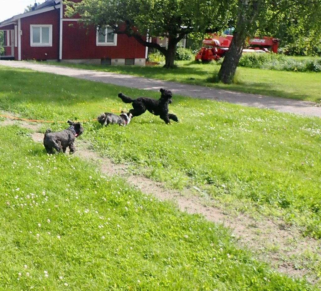 Sen blev det lite springa av, storpudel tiken Raska och Corgi tiken Majken tog täten och Troy försökte hänga på men han blir lite efter.