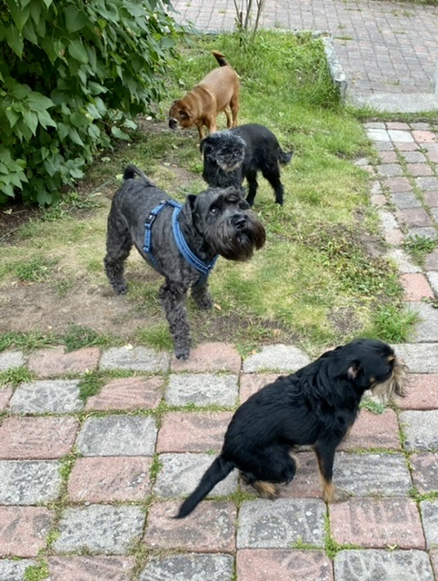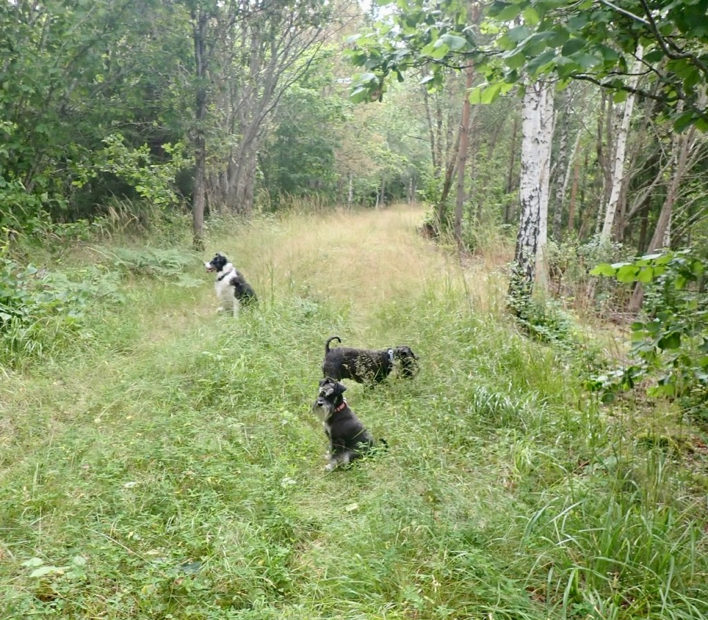 På promenad i närheten av ravinen. Troy var lite besviken för bästa springkompisen Basse inte var med. Det är bra med en lite lugnare promenad för Troy har nog överansträngt vänster bakben. Han är lite stel när han legat och vilat.