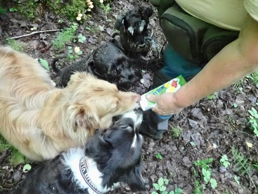 Basse var och hämtade ett av sina gömda skogsmarinerade revben. Troy fick ta över det efter en stund. Han bar runt det en lång stund, stannade och gnagde lite innan han gick vidare.