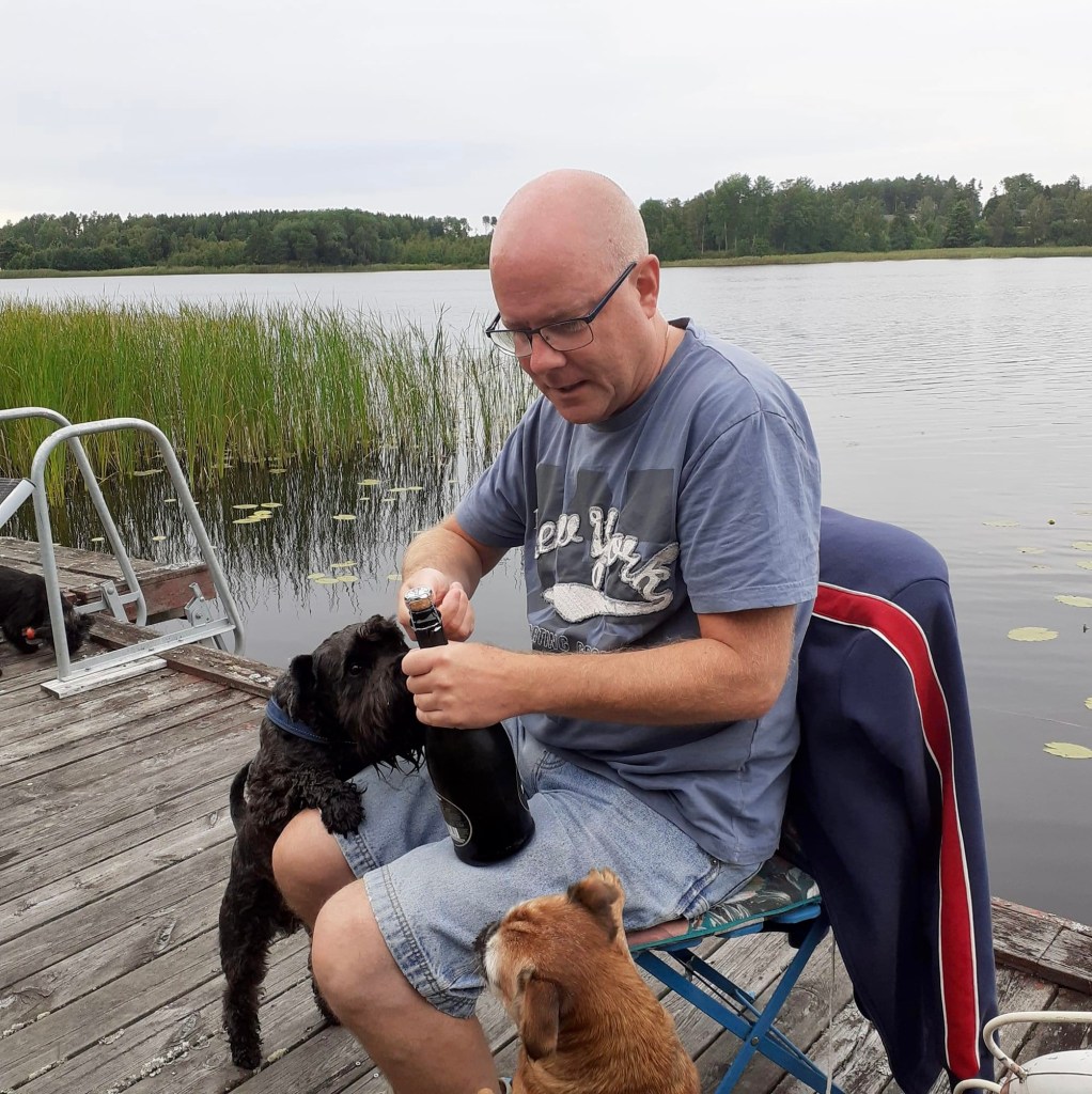 Söndag kväll och vi är på väg till kompisarna Magnus och Gunnar för champagne party på deras brygga. De bor på lagom promenadavstånd..