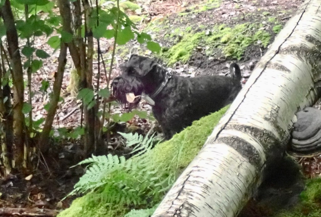Wilma spanade också och ledde oss genom skogen. Jag sa, Wilma är du säker på att det är rätt väg. Det är fasligt mycket ormbunkar här och jag ser ingen stig.
