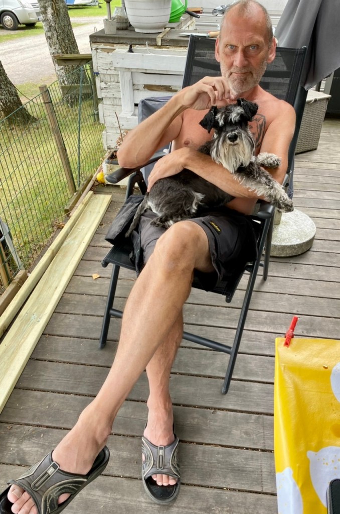 Matte väsnas en massa, ni vet hon är tokig med sina elverktyg så jag gick fram till Nisse och bad om att få sitta i hans knä. Ja jo det är inte många som jag kan tänka mig att sitta i knä hos, Nisse är en av dem. Han skulle egentligen gå till sin vagn för att äta lunch men han stannade och gosade med mig en lång stund. Jag gillar honom.