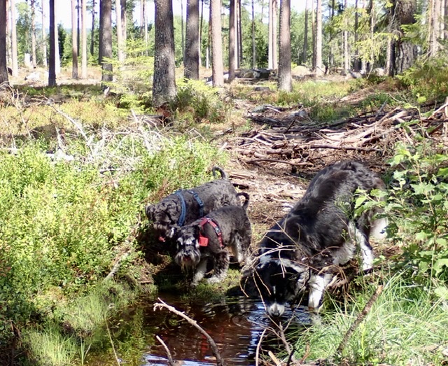 Basse och Wilma var iväg för att söka efter vatten men de kom tillbaka med tomma tassar. Vi gick tillbaka till bilarna och släckte törsten för matte hade tagit med vatten.