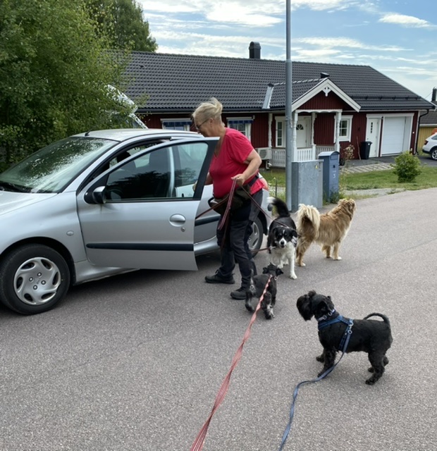 Det blir lite stökigt nar alla glada hundar skall hälsa på varandra.