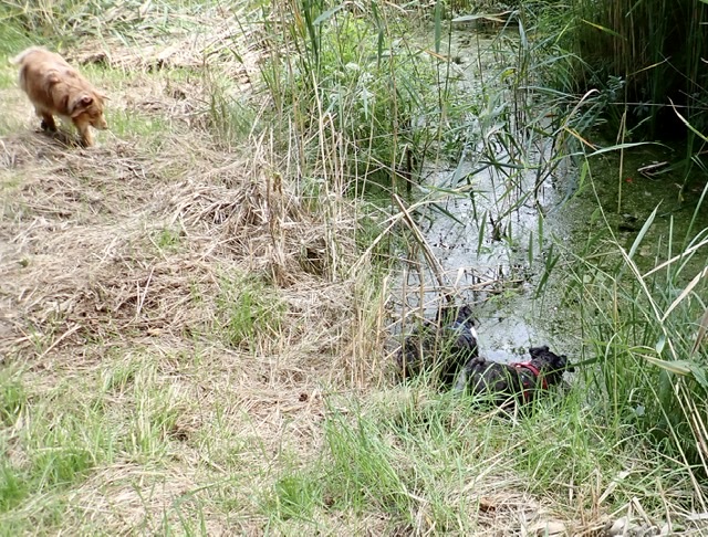 Vi åkte hem till Basse som sa att kom så tar vi ett spabad. Det hela börjar med ett dopp i lerdiket som är fyllt med någon slags sörja. Mattarna tycker inte om lukten men vad vet de om lukt, jag bara frågar?