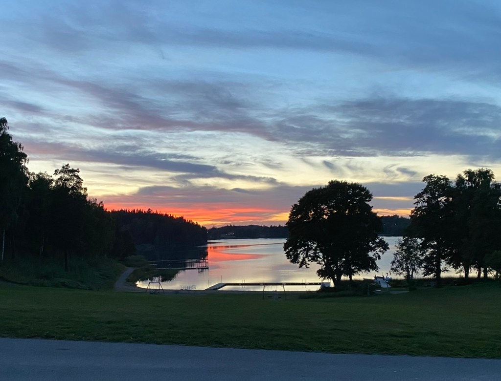 Augustikvällen infinner sig med sitt mörker. Solcellslamporna tänds och det är underbart med en svag vind och en lagom temperatur. Vi stannar uppe lite längre än vanligt. Det är kvällar som denna vi minns och lever på under vintern.