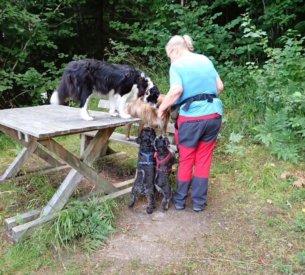Framme vid det stora rastbordet vet vi att det vankas godis. Alla vovvarna vill smaka så det gäller att hålla sig framme.