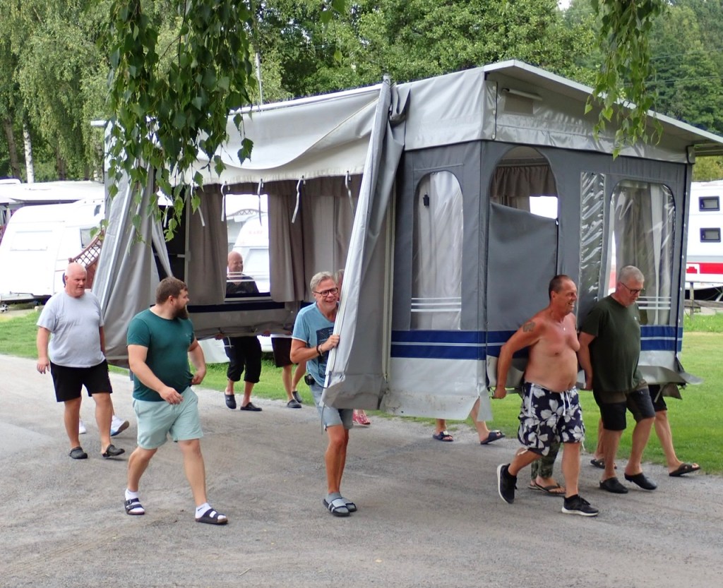 Så då var det dags igen för matte att hjälpa till med en tältflytt. Vi satt på vår veranda och tittade på när tältet kom gåendes.