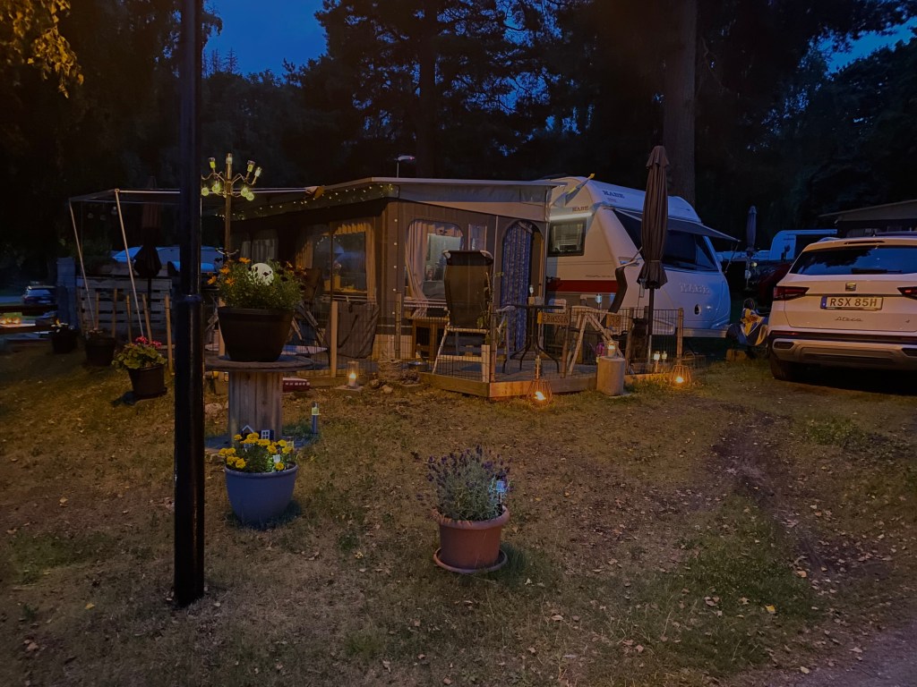 På kvällen var vi på middag hos kompisar här på campingen. Senare när mörkret började falla tänds cirka 400 marschaller det var årets lyskväll. Matte tände några egna också.