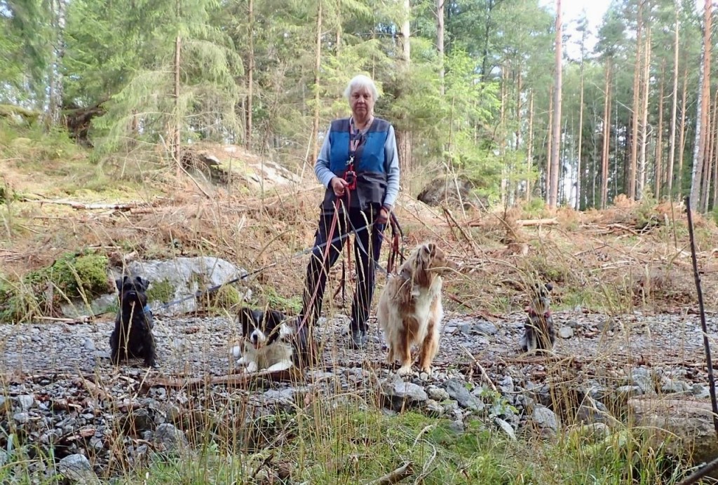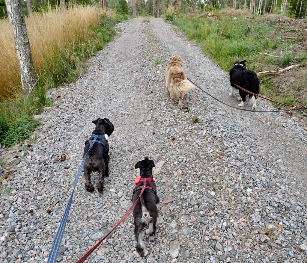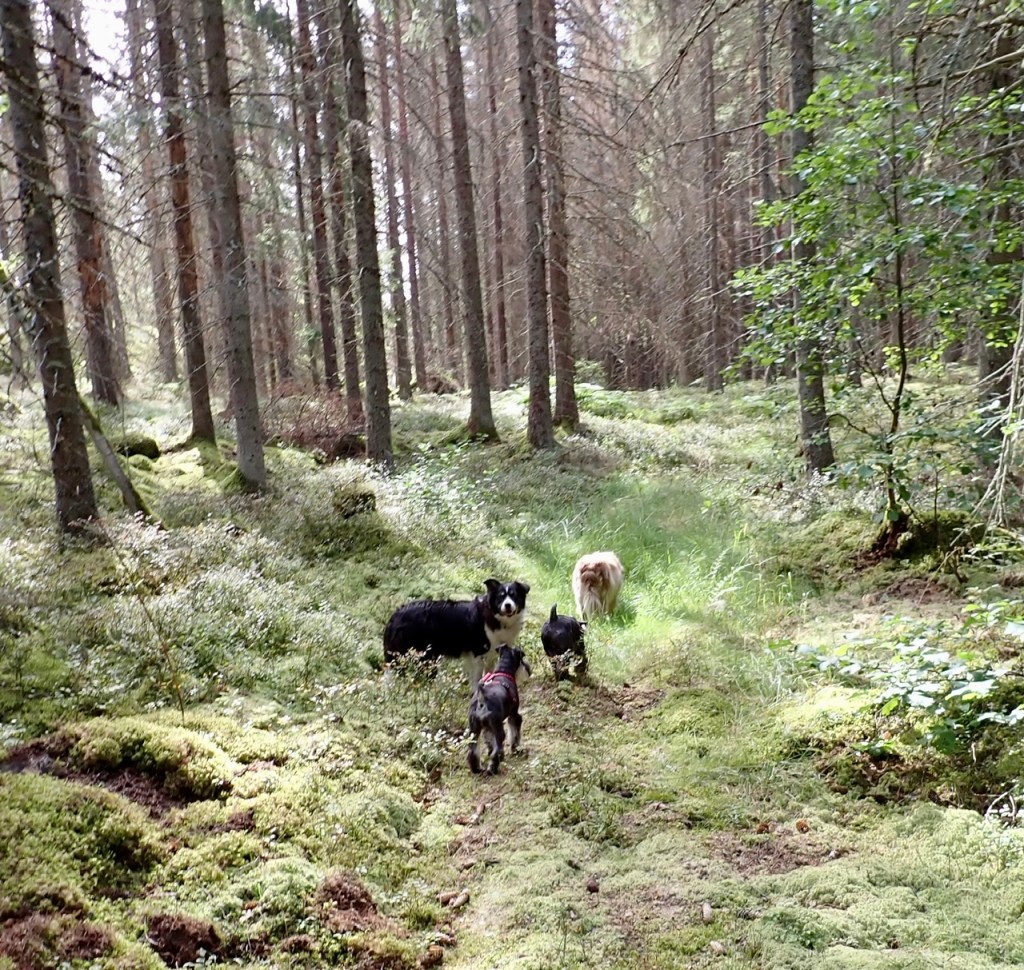 Nu ut till en skog vi inte varit i på ett tag. Det är en härlig skog fullt med blåbär och mjuk mossa. Som gjord för att kuta runt i.