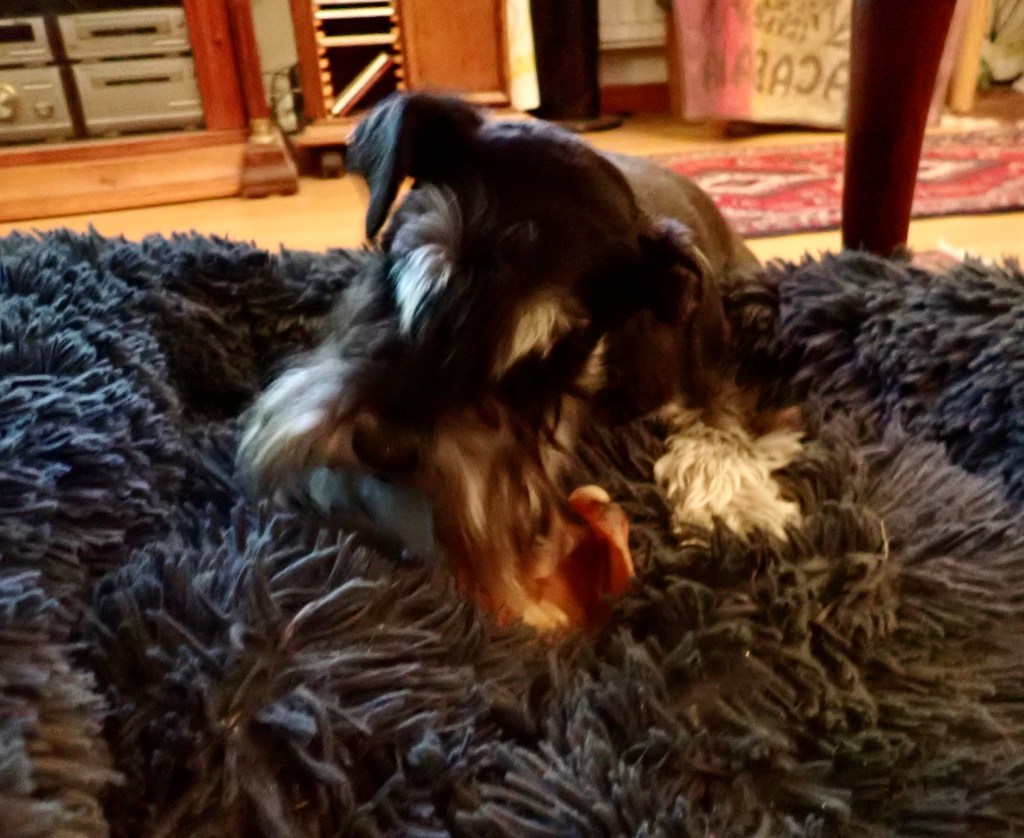 Lördagsmys ett grisöra i korgen under soffbordet. Där är det lugn och ro.