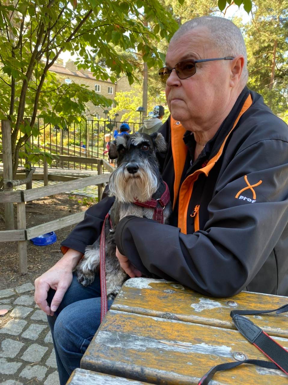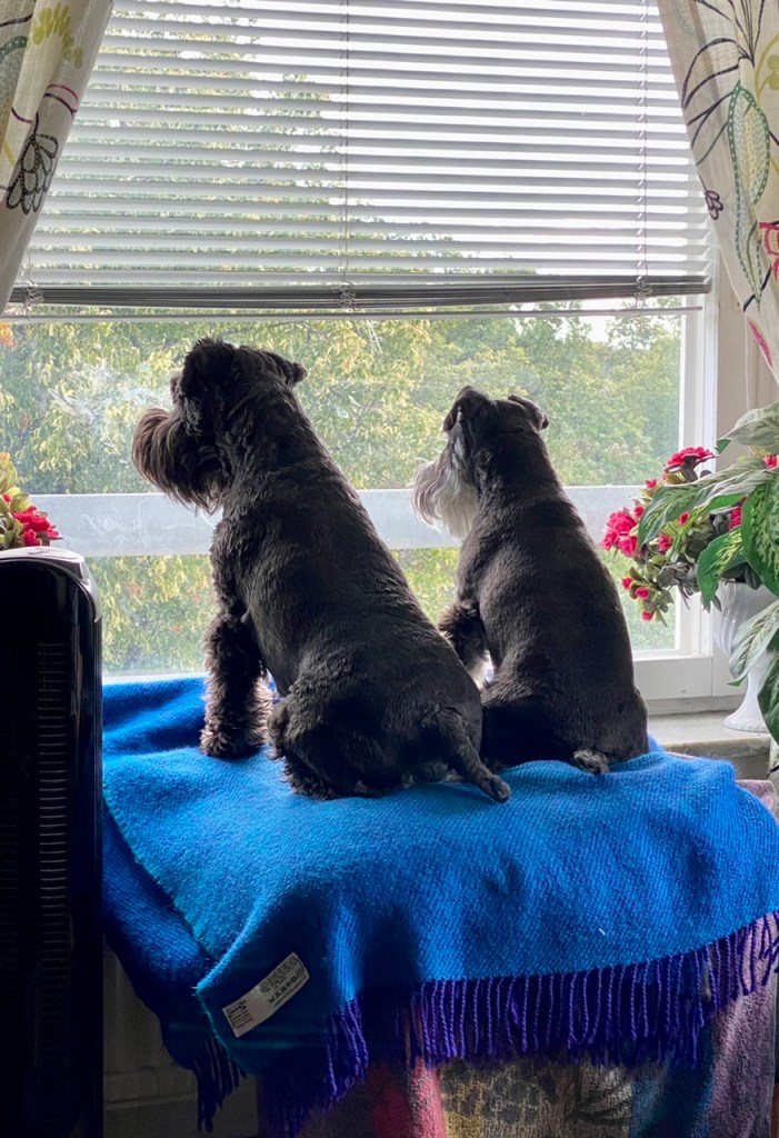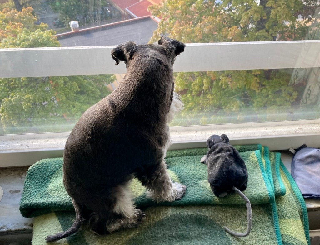 Hemma igen jag tycker att det är ett evigt åkande fram och tillbaka. Nå väl vi tar plats i fönstret och upptäcker en ekorre och en katastrof. Vi voffar allt vi kan.