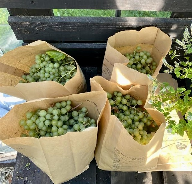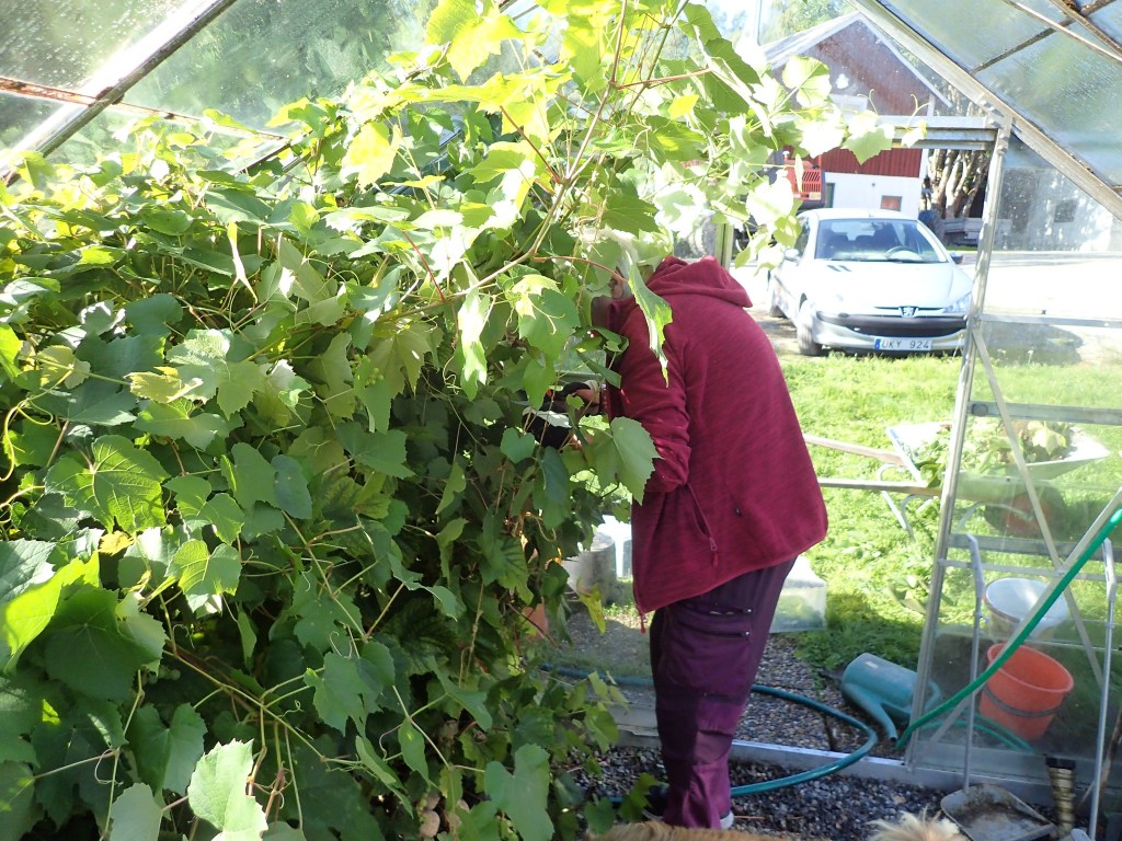 Nästan 4 kg druvor blev det och 2 kg av det ska med hem till stan för att förvandlas till gelé.