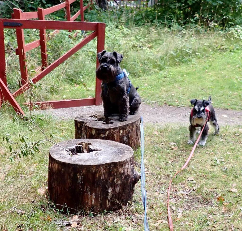 Mera påhitt….. hoppa stubbe är svårt men Troy tycker att det är kul han kör några vändor fram och tillbaka. Matte tycker att han är duktig för att han sitter fint och väntar på ett startkommando