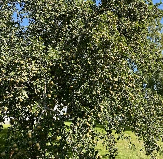 Det är enormt med frukter i år. Päronträdets dignar nästan.