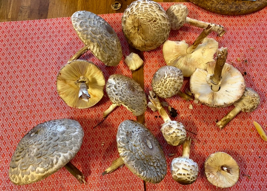 Titta sa matte stolta fjällskivlingar. Nja sa vi tror inte på det och vid en koll med Helena visade det sig att de är rodnande fjällskivlingar och de är inte bra att äta, man blir rejält magsjuk. Matte fick sen veta hur man ser skillnad på dem.