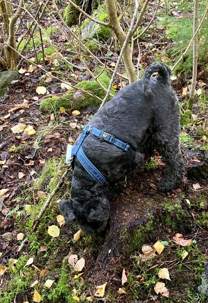 Söndag och vi tar en tur i skogen innan vi åker hem till stan. Helena och Wilma är i en annan skog där de håller kurs för hundar i svampsök.