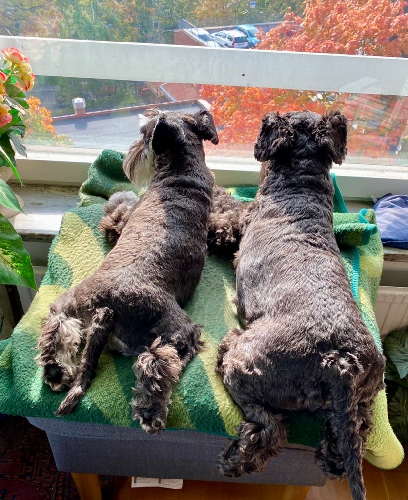 Efter middagen vilar vi lite i solen och kollar vad som sker på gatan. Vi småpratar lite hemligheter med varandra. Matte undrar vad vi snackar om men det säger vi inte för en hemlighet är en hemlighet.