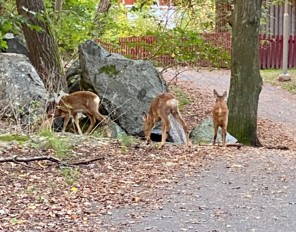 Alltså de däringa rådjuren på baksidan av vårt hus de är totalt orädda. Denna gång en hona med två Bambi. Matte säger att vi inte får göra utfall och skälla på dem men…. me flyttar sig inte förrän vi skäller lite fast vi inte får.