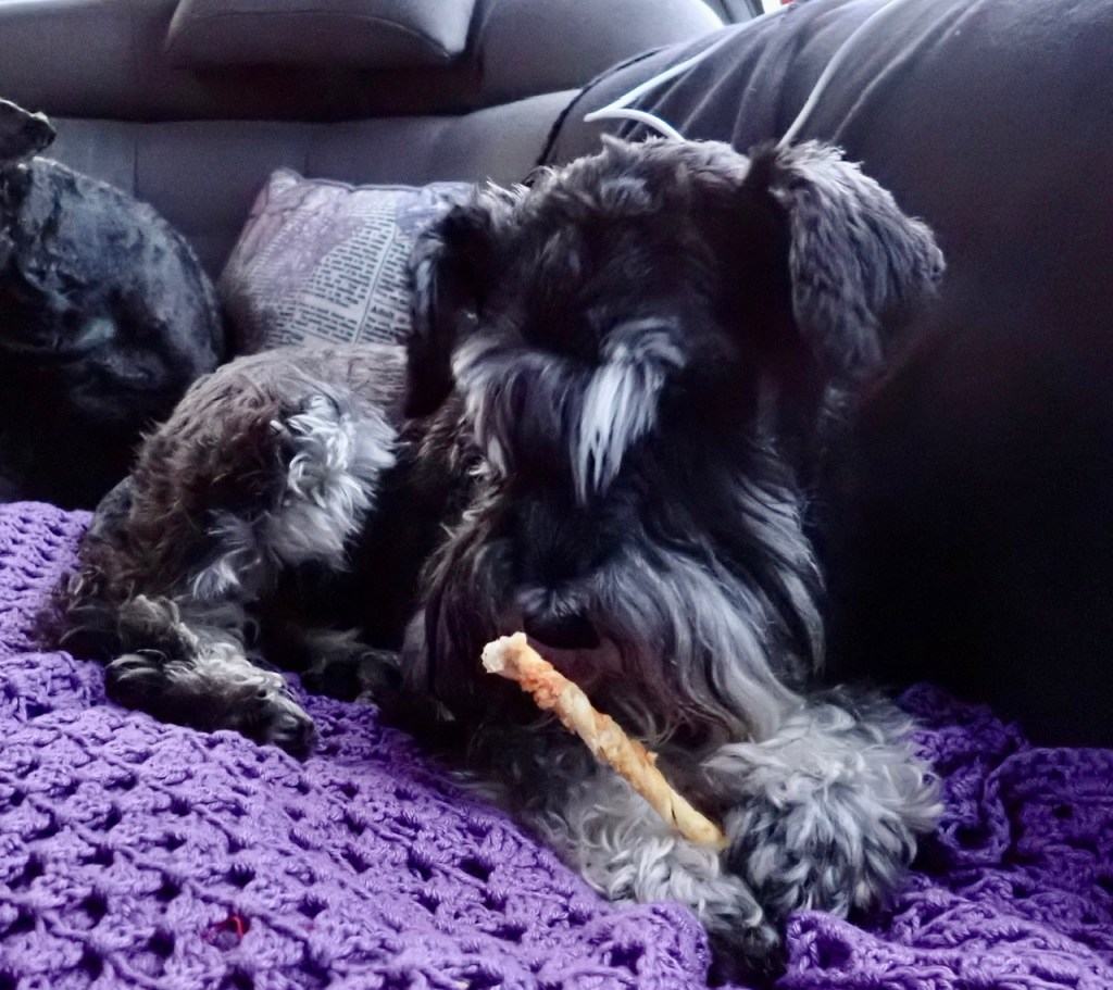 Tillbaka i vagnen tar vi en stund med varsin tuggsticka medans det pågår vinterförberedelser utanför. Matte väsnas med en lövblås och då tar vi oss en välförtjänt tupplur.