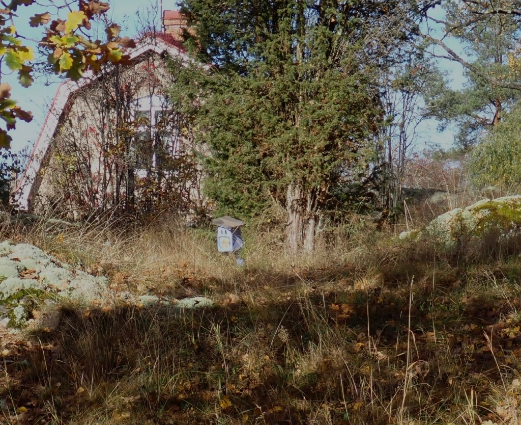På väg till bilarna såg vi en konstig låda i skogen. Nä vi vet inte vad det är för något men den såg lite udda ut.