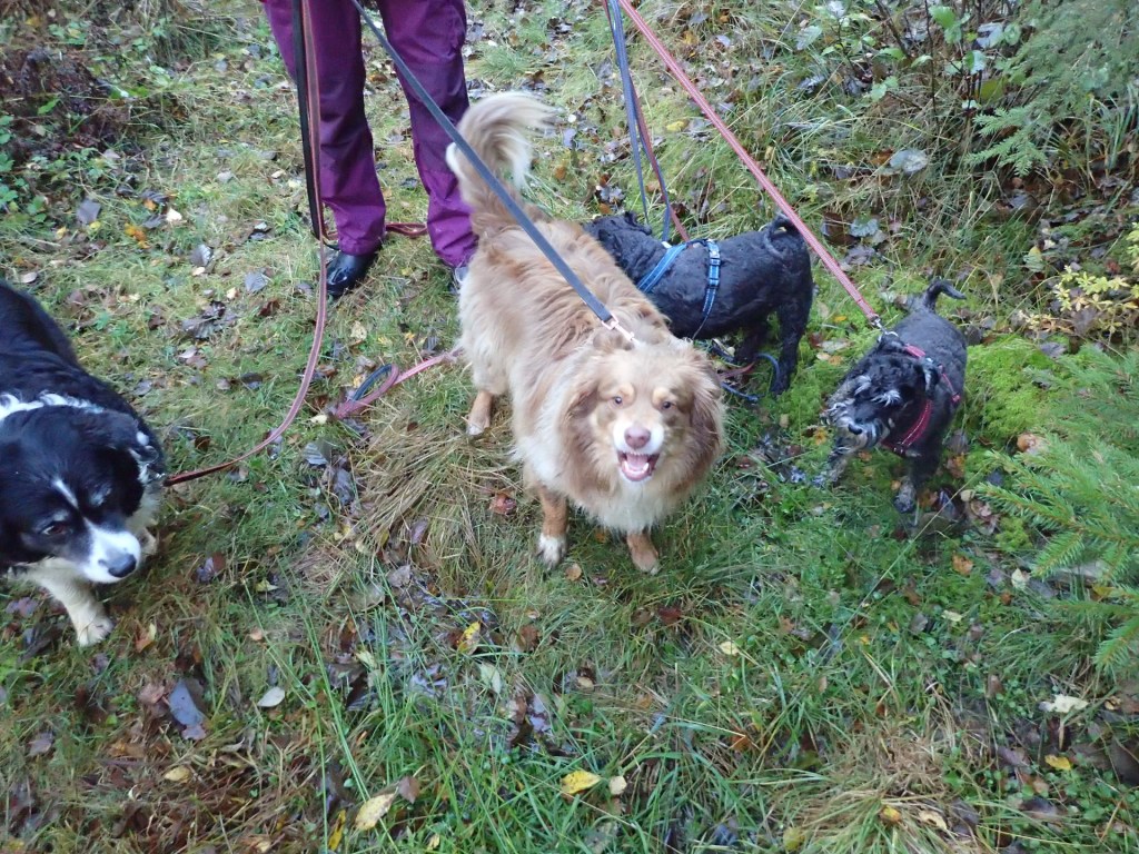 Så samlar vi ihop oss och vi startar promenaden. Troy stack i väg till de som gick först men det dröjde inte länge förrän han kom tillbaka, lite oroligt letade han efter matte. Troy här är jag sa matte, han tiggde till sig lite gotter. Du är duktig som håller koll på mig sa Matte
